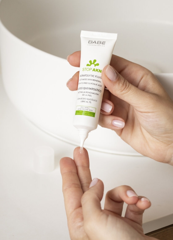 Conjunto de tres activos (extracto de Iris, Sulfato de Zinc y Vitamina A) con acción seborreguladora que controla la aparición del acné.